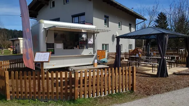 Am Anfang war da nur dieser leere Verkaufsanhänger. Wir haben ihn hier im Garten ausgebaut und eingerichtet. Zu dieser Zeit hatten wir noch keinen festen Standort in Aussicht. Aber von verschiedenen Seiten kam die Idee, dass das genau hier funktionieren könnte.